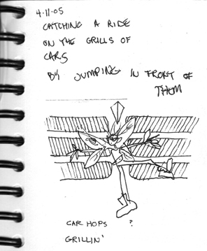 I have some ideas. As to their ability to get around town so fast: Grillin' As I noted, crudely*, in my Sketchbook/journal on 4.11.05. |