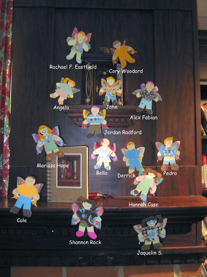 they have names and are LABELED as such. Their backsides have writing which indicates that they are all WATERS fairies from North Carolina. They are "4th Grade"! Flat Fairies, which indicates that there is some sort of hierarchy amongst the flat fairies and THESE are rather advanced... beyond the 1st, 2nd and 3rd levels. I was not aware of a fairy grading system. Their names are; |
