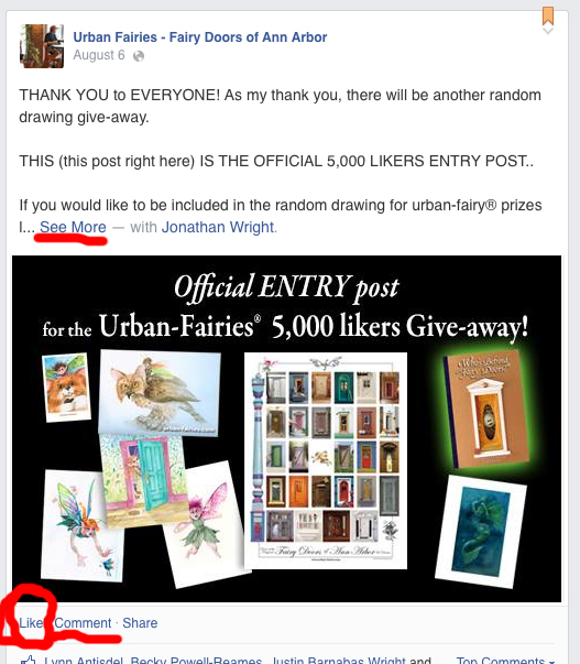 Having a random drawing GIVE-AWAY! In appreciation for reaching 5,000 page likers on FaceBook, I am having (another) random drawing to give away A signed book, a Poster of fairy doors, signed prints of my fairy illustrations and an original drawing....