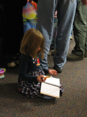 Seamus (2 years old), Mom and Grandma at The Ark My family just happened to be downtown when this group showed up. A significant group in the mystery of urban fairies as it turns out. |