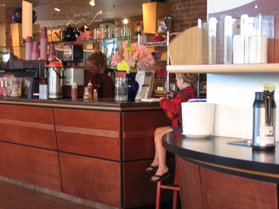 Fairy-finder(s) at Sweetwaters Café So there I was having a mocha at Sweetwaters and what I thought was a group of 3 women came up and took some pictures of the fairy door and poster there. They had a map of the urban fairy doors and as it turned out 2 other partners in "crime". |