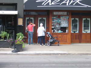 A short while later as I drove to work...I see the group again at the Ark. I stopped and commented that they were "touring kind of early as Voila and Peaceable Kingdom did not open 'til 10 AM" (it was 9:30?). The response was that they were playing hooky! OooooooooOOOoooooo!! BUSTED! |