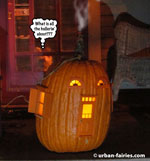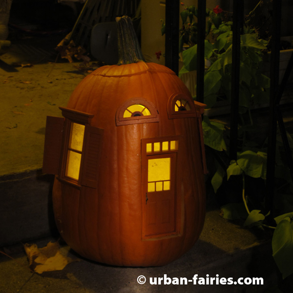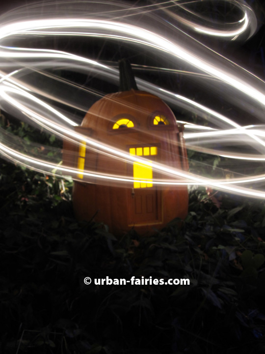 A fairy flies off! (the pumpkin cottage looks similar to last year, but by careful comparison one can see the eye/windows are set wider) |