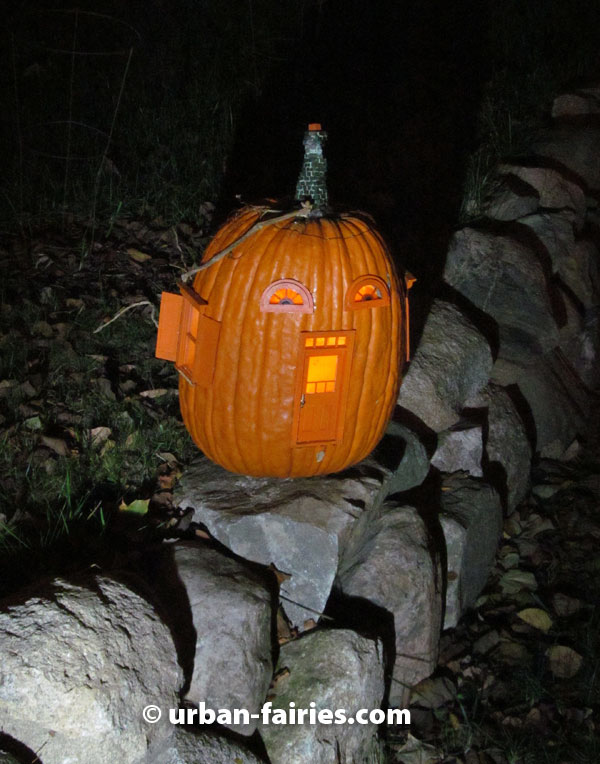 Fairy Door porch pumpkin, Ann Arvor fairy door. flying pumpkin cottage