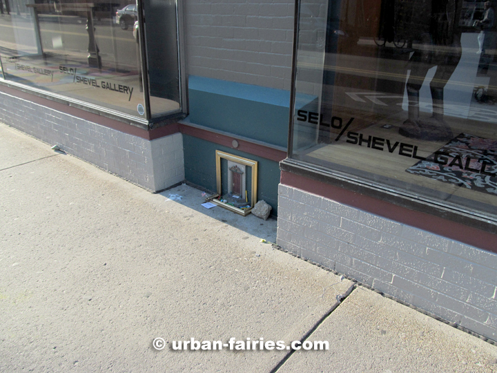 I was driving by the Selo/Shevel Gallery and saw a Gold frame around the fairy door. I thought "Hey, that looks kinda nice." |