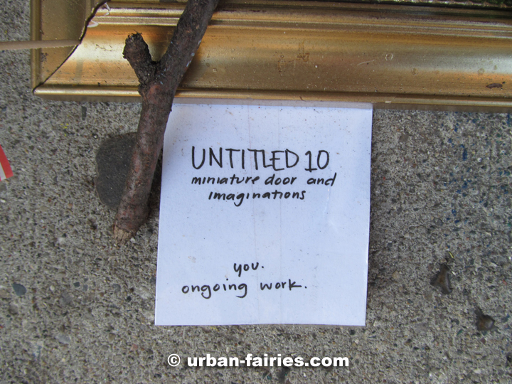 There was a "gallery tag" attache dto the frame, which gave a clue to the purpose. It seems that someone was making a statement about the fairy doors being "art"... a participatory art. This seems to be a case of stating the obvious, and best left unsaid. |