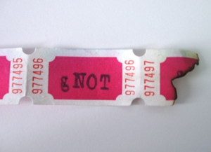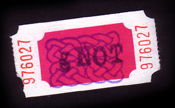 The Ark tickets have been going at what seems to be a reasonable rate for neraly a MONTH... there were three abandoned tickets on the sidewalk. The last ticket on the roll being #818090 |
