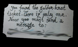 A close-up of the same photo shows the "Golden Knot" ticket. Perhaps this is what "g NOT" was about? |