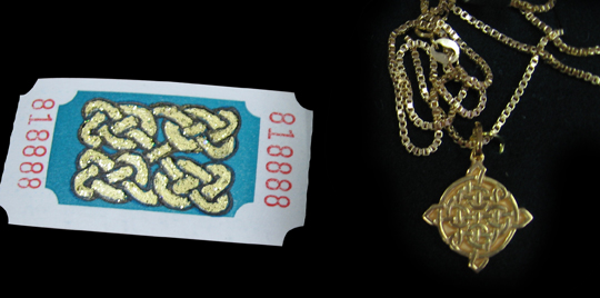 This series of tickets is a bit MORE cryptic; there is a Celtic knot on a magenta background with the word
