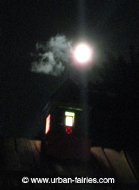 By the light of the full moon I saw this wee fairy cottage looking like a cupola on the ridge of a roof top.