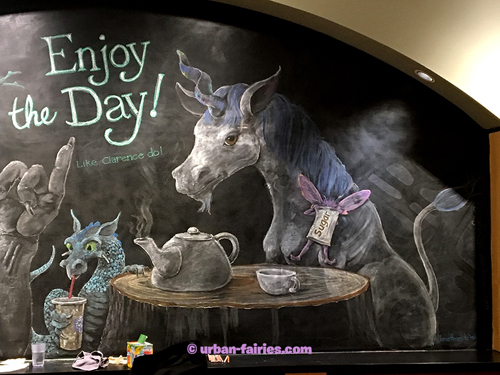 In May of 2018 The Tea Time with Clarence chalk mural began.