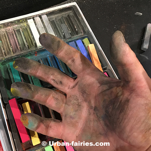 Started the Ice Dragon mural Spring 2017. I began roughing it in using a Walkie Chalk® to extend my reach.