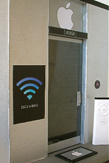 A couple of close-up shots. The address is 500GB. I canot quite read what is below the Airport signal on the left. They appear to have an OSX doorbell on the right.
