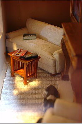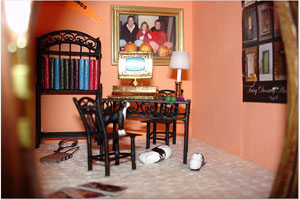 It's quite comfy inside. A sofa, armchair, table, mantle, a copy of Oprah magazine and even a framed portrait of the A-team girls.