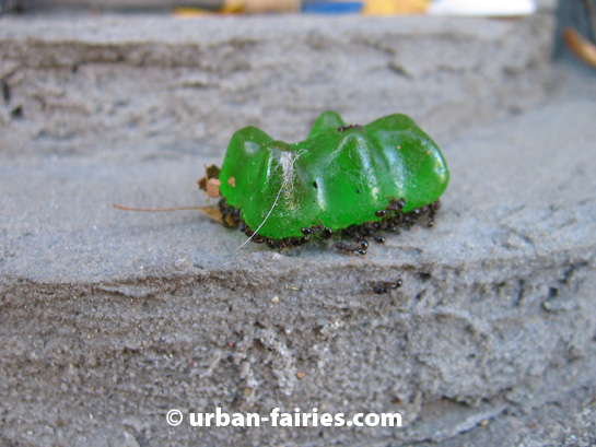HOWEVER, I don't think these ants are helping the fairies to bring the hapless Gummi Bear inside, I think they are appropriating it for themselves! |