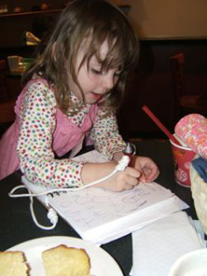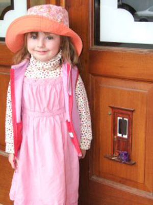 The following photographs were e-mailed to me on February 14, 2007 by the subject's mom. However, the pictures were taken back in April 2006 when the subject was still only 3 years old. I love her hat! |