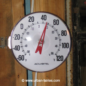 | The weather gets me to thinking about fairy anatomy/biology... I suppose that being weensie, they might have higher metabolisms (like mice)... combined with all the sweeties they seem to be ingesting, I bet they generate considerable energy. Never-the-less I bet they are "laying low".